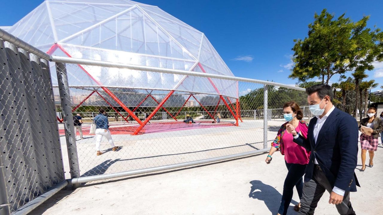 El consejero de Urbanismo, Víctor Serrano, destaca el valor añadido que supone esta ubicación, que forma parte de la zona de expansión de Tenor Fleta, una vez finalicen las obras del enlace con el Tercer Cinturón. Se trata de una cúpula semiesférica de 15 metros de alto y 30 de diámetro, con un escenario de 118 metros cuadrados y una plaza para 2.500 espectadores.