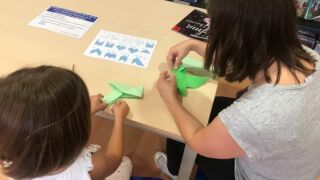 Las pajaritas laurentinas y diez ilustraciones de Maón Acín volarán a Lituania. Se trata de un reto que nació durante la pandemia, en agosto de 2020, que consiste en llenar de pajaritas laurentinas las bibliotecas oscenses para que luego viajen a otros lugares del mundo.