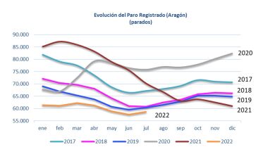 El dato del último mes no es positivo, pero si lo comparamos con las cifras de hace un año, el desempleo se ha reducido en 11.592 personas, un 16,5% inferior. En junio, el paro bajó en el colectivo sin empleo anterior, aumentó en el resto, en especial, en la industria y servicios. La mala temporada agrícola y la discontinuidad en el contrato de algunos profesores están detrás del aumento del paro en junio. El número de contratos se ha reducido en un 15% respecto al mes anterior. Sin embargo, la consejera de Economía, Marta Gastón, señala que, a pesar de que los indicadores apuntan a una desaceleración, están en alerta, pero insiste en que no debe cundir la alarma. En estos momentos, 698 trabajadores aragoneses están en ERTE, la mayoría por razones económicas.