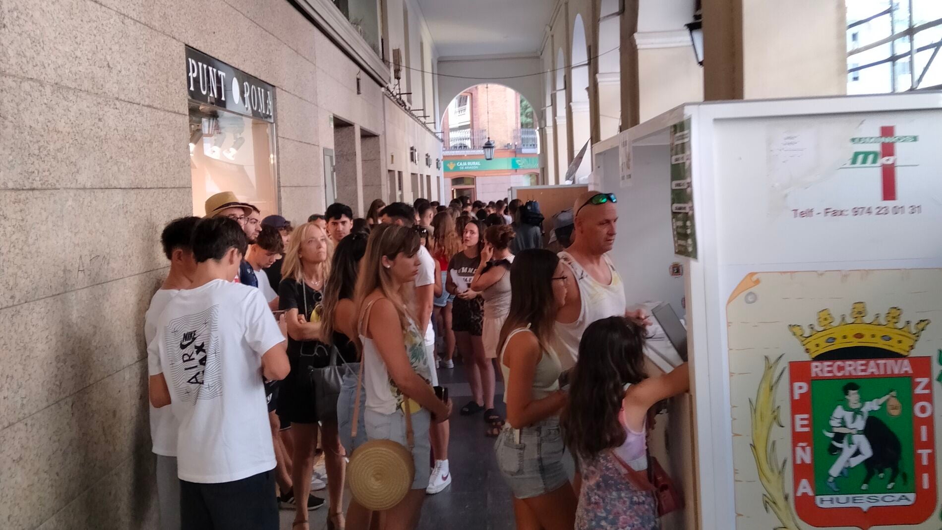 Aunque no se ha repetido la avalancha del primer día de campaña del 2022, miles de oscenses han pasado por los porches ya sólo por la mañana y los abonos infantiles y para los toros han sido los más demandados. De hecho, muchas peñas se han quedado ya sin abonos para los toros.