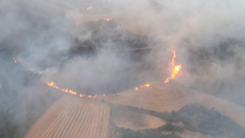 Hasta entonces, los vecinos han estado trabajando con sus tractores para realizar cortafuegos que consiguieran frenar el avance del fuego. A primera hora de la mañana estaban trabajando cinco cuadrillas y tres autobombas, además de los tres helicópteros de Ejea de los Caballeros, Brea y Bailo y tres brigadas helitrasportadas.