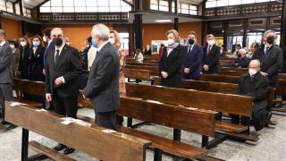 Al funeral han acudido las principales autoridades de la Comunidad y representantes de partidos políticos. Entre ellos, el presidente del Gobierno de Aragón, Javier Lambán, el de las Cortes, Javier Sada, o el Justicia de Aragón, Ángel Dolado.