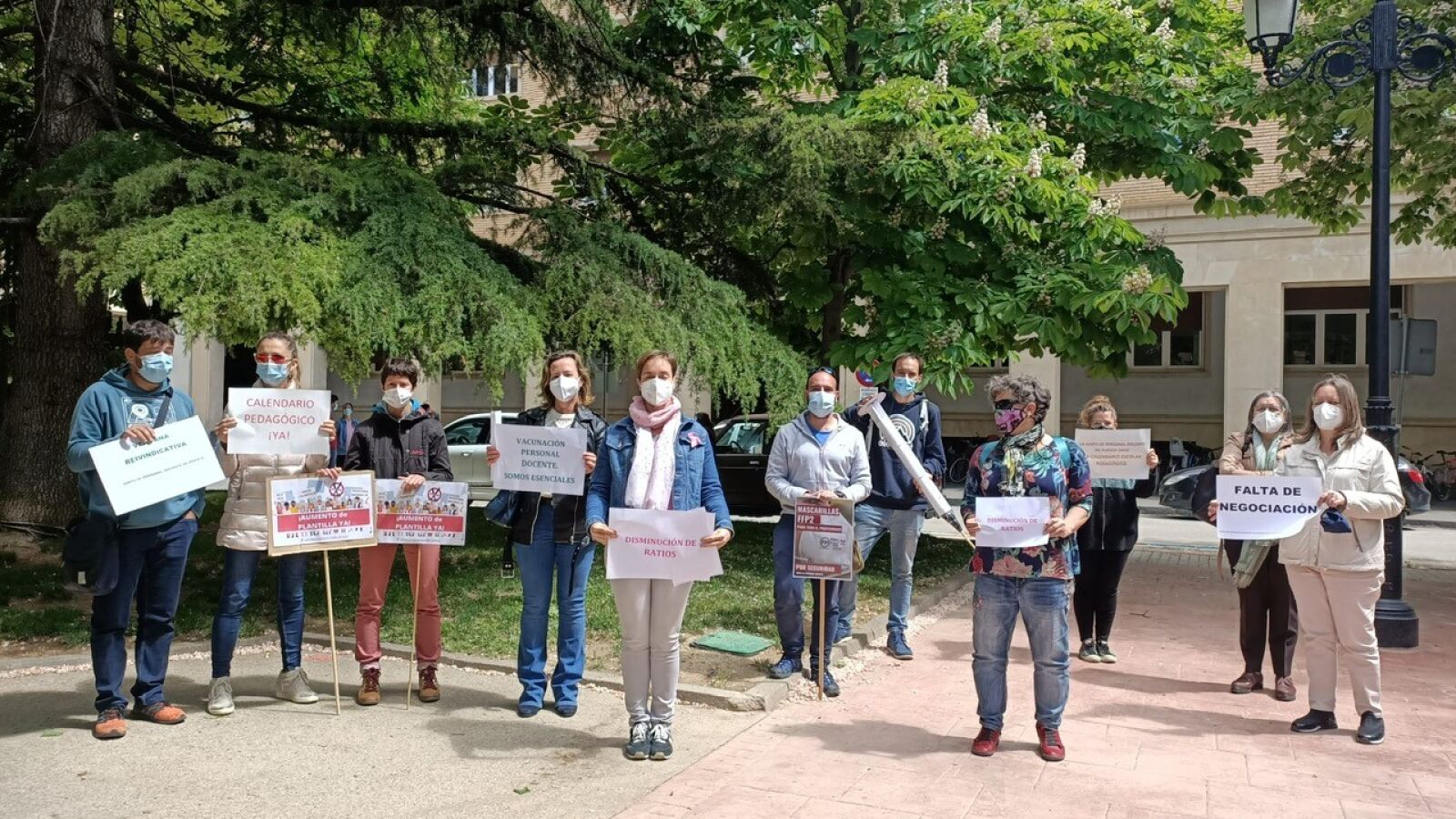 La de este martes es la primera de las tres movilizaciones que la Junta de Personal Docente tiene previsto realizar este mes de mayo. El profesorado volverá a salir a la calle los días 18 y 25 de mayo. Hoy a las puertas de la Delegación de Educación, en la plaza Cervantes, han reivindicado mayor concreción para los docentes a los que les falta por recibir las segundas dosis de Astrazeneca y también para otros colectivos del sector que todavía no han sido vacunados.