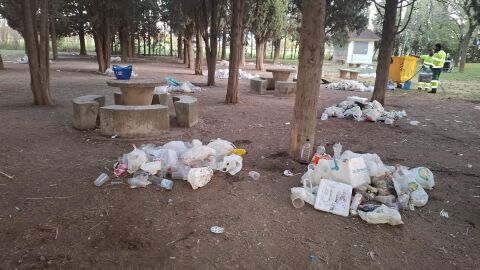 Desde primera hora de la mañana, las brigadas municipales de limpieza han trabajado de forma intensiva para recuperar el estado de la zona, retirando 760 kilos de envases y 350 kilos de vidrio.