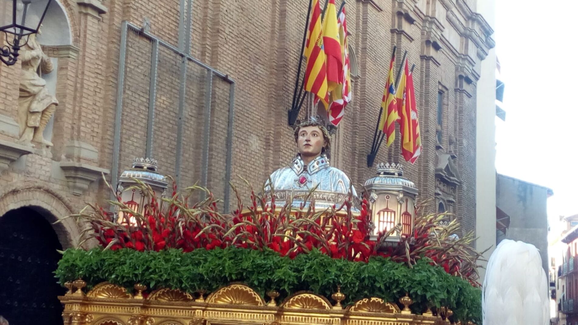 Tras la actuación de los danzantes, el busto de San Lorenzo ha salido de la basílica para presidir la procesión en la que han participado cientos de oscenses ataviados con traje regional. El desfile, que cerraban los danzantes, ha contado además con una nutrida participación de representantes políticos regionales, encabezados por el presidente del Gobierno de Aragón, Javier Lambán, a los que el alcalde les ha dado las gracias por participar de la fiesta de la capital de Aragón.