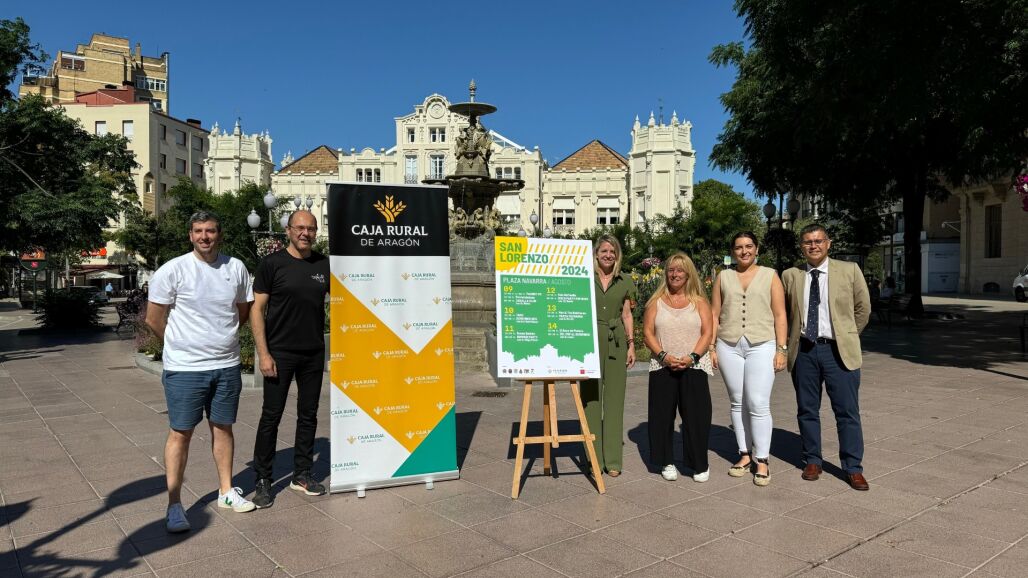 La concejal de fiestas, Nuria Mur, y representantes de varias Peñas Recreativas de Huesca han presentado las actuaciones y conciertos que se desarrollarán en la plaza de Navarra durante las fiestas de San Lorenzo.
