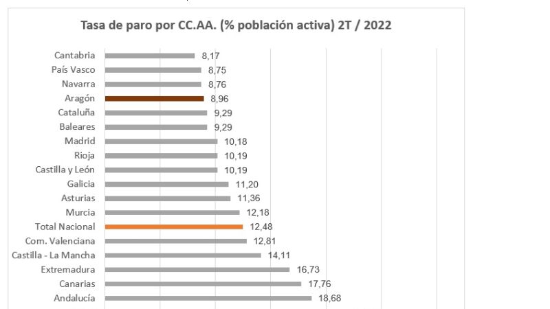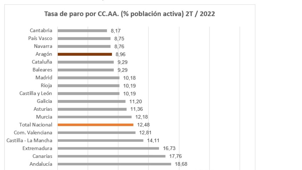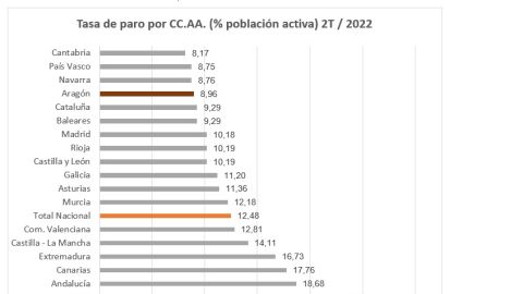El sector de la hostelería ha sido el que ha tirado de la creación de empleo. La evolución es desigual por provincias. En Huesca el paro se sitúa en el 10,87%, en Teruel en el 9,07%. Zaragoza, con una tasa del 8,5%, es la sexta provincia española con menor tasa. Según la EPA, el número de personas ocupadas ha aumentado en 13.300, hasta alcanzar las 587.400 en el último año.