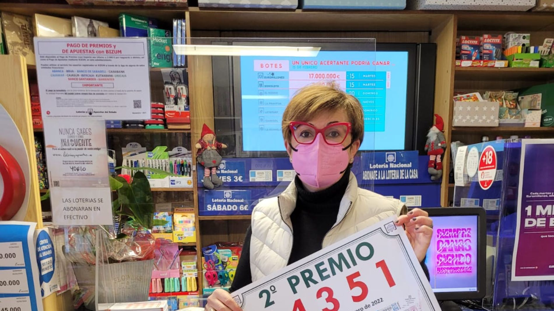 De todas maneras, ha mostrado su alegría por “comenzar el año con este premio”. No es la primera vez que reparte suerte, ya que hace dos años selló una primitiva de 54.000 euros “y también hemos dado otros premios menores”.