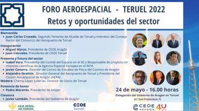Además de los principales empresarios turolenses y aragoneses, en el encuentro participará la presidenta del Comité del espacio del Instituto de Ingeniería de España, Isabel Vera, que a su vez es la responsable del proyecto en misiones científicas de la Agencia Espacial europea.