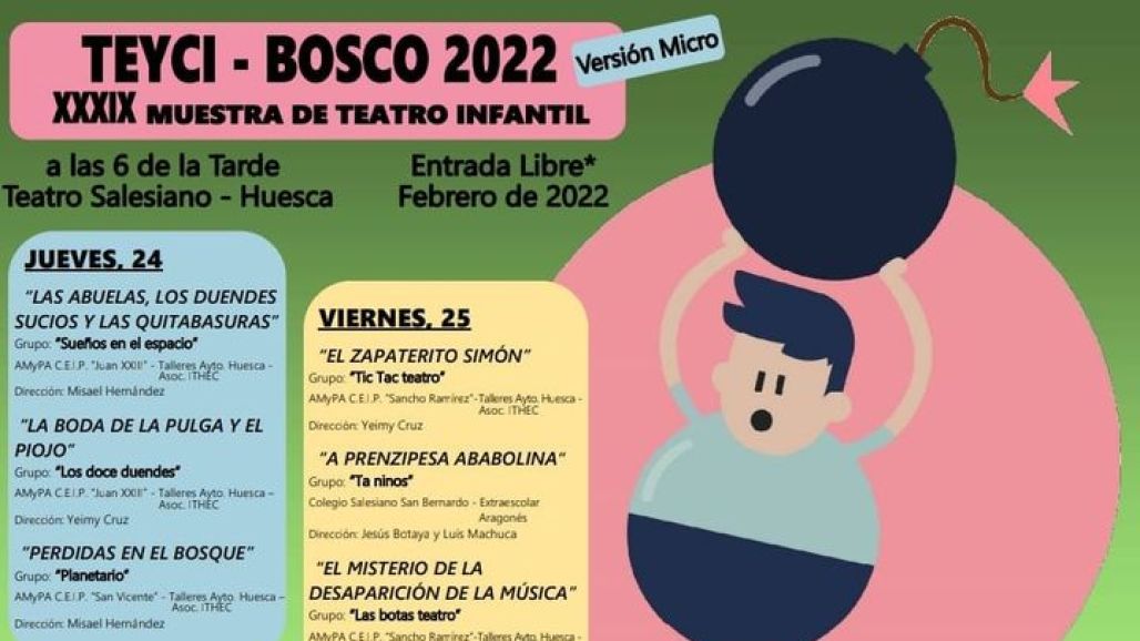 El Teyci Bosco se celebra habitualmente en enero pero la complicada situación sanitaria debido a la pandemia obligó el mes pasado a aplazar la muestra hasta esta última semana de febrero. El coronavirus también impidió que la muestra se celebrase en 2021, de modo que la organización del Teyci-Bosco ha estado trabajando para poder contar al menos con una versión reducida de la muestra. Pese a todo son muchas las ganas de poder disfrutar en el Teatro Salesiano de las propuestas que han estado trabajando los pequeños intérpretes.
