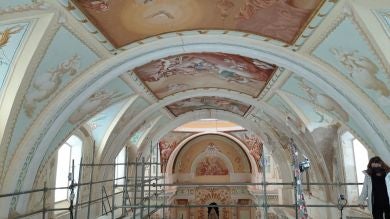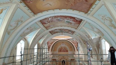 Mientras llegan los resultados de las analíticas realizadas para determinar qué técnicas siguió Fray Manuel Bayeu en las pinturas murales de la iglesia de la Cartuja de las Fuentes y cuáles son sus patologías, la empresa que va a llevar a cabo su restauración se encuentra estos días desarrollando diversas actuaciones previas al inicio de los trabajos, que se espera puedan comenzar a finales del mes de noviembre.