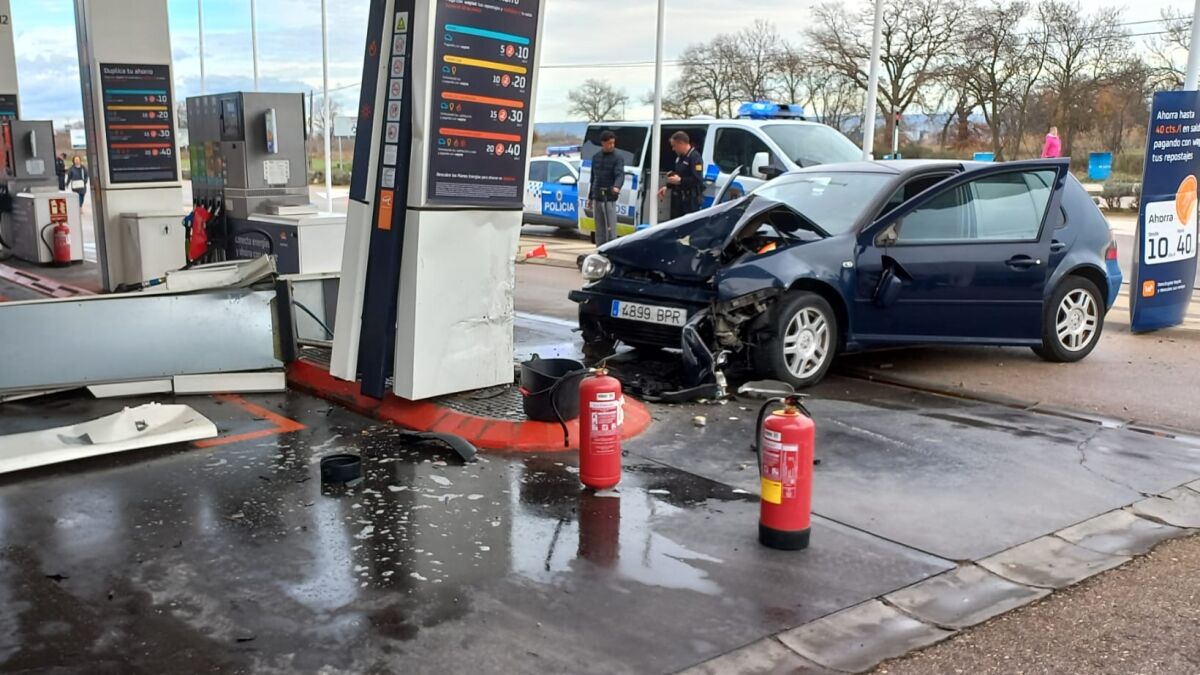 Un conductor perdió el control de su vehículo a primera hora de la tarde de este miércoles en la avenida Martínez de Velasco, y terminó estrellándose contra un surtidor de la gasolinera que se encuentra junto a la ITV.