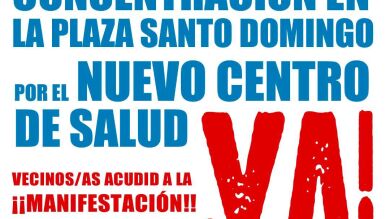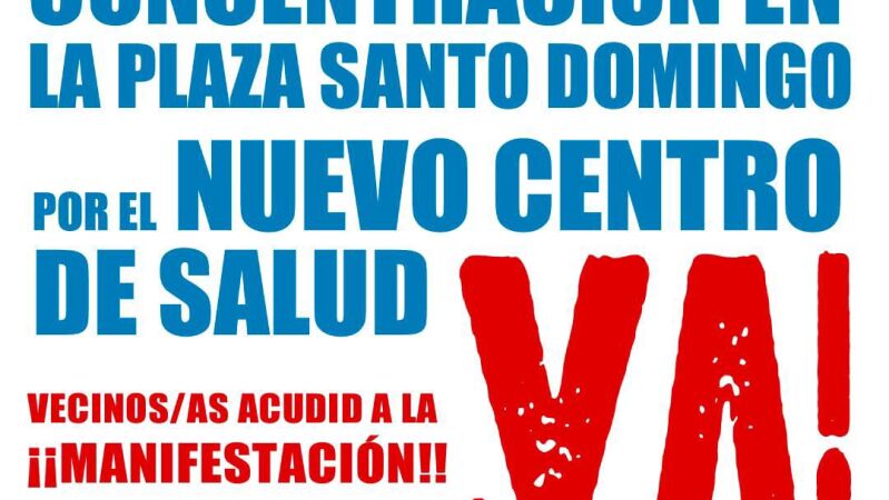 La manifestación, bajo el lema 'Por el nuevo centro de salud, ya', saldrá a las 11,30 horas de la plaza de Santo Domingo, transcurrirá por la avenida Ramón y Cajal hasta el solar de la antigua cárcel, donde se emplazará el nuevo centro.