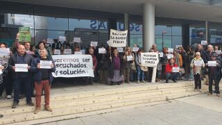 Vecinos y representantes de los municipios zaragozanos de la Val de Onsella y del Valle de Pintano se han concentrado este mediodía frente a la sede del Departamento de Sanidad del Gobierno de Aragón para protestar por la falta de médicos en esa zona de la comarca de las Cinco Villas. Denuncian que la zona básica de Sos del Rey Católico tiene solo una plaza cubierta de las tres disponibles, y la única doctora titular tiene que atender 800 tarjetas sanitarias, el trabajo que corresponde a dos profesionales.