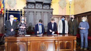 El alcalde de Huesca, Luis Felipe, y el consejero de Vertebración del Territorio, Movilidad y Vivienda, José Luis Soro, han firmado un convenio de colaboración para la enajenación una parcela de casi 6.000 metros cuadrados ubicada en la zona de Los Olivos. Dicha parcela en el número 20 de la calle Calatayud está clasificada como suelo urbano no consolidado de uso residencial, y que cuenta con un aprovechamiento edificable de 20.700 metros cuadrados. El Ayuntamiento de Huesca es propietario del 9,62% de esta parcela, mientras que el Gobierno de Aragón, a través de Suelo y Vivienda de Aragón, lo es del restante 90,38%.
