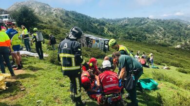 Los heridos viajaban en un autobús con un conductor y 48 pasajeros que había salido desde Covadonga hacia los Lagos (C0-4) y que volcó tras superar el mirador de La Reina por causas que están siendo objeto de investigación.