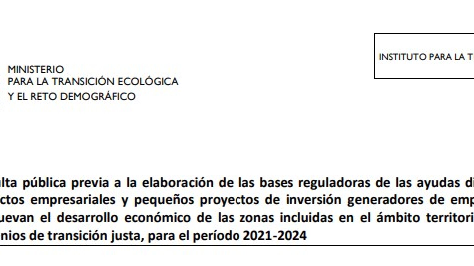 Las respuestas a esta consulta pública podrán remitirse hasta el 19 de febrero de 2021 al correo electrónico consultapublica@transicionjusta.gob.es