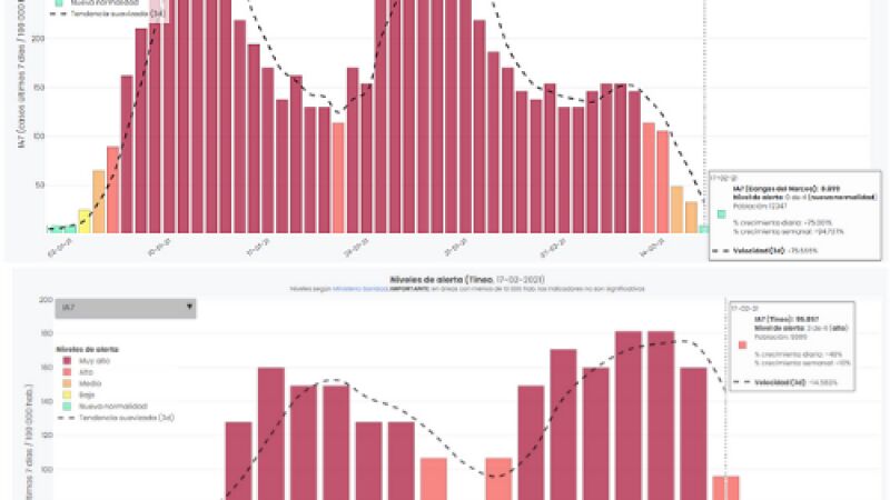 Semana en la que sólo ha sumado 1 caso, lo que propicia que el color para ese dato sea verde y el valor, 8 casos por cada 100.000 habitantes, algo que no se daba desde los primeros días de enero de este año.