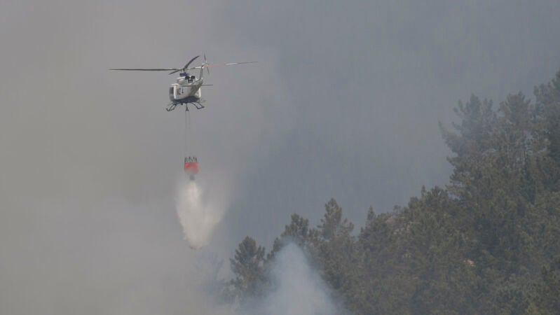 El incendio de Tuña, en Tineo, humean zonas dentro del incendio en él trabajan Bomberos de Asturias, una empresa forestal y un helicóptero de Bomberos de Asturias.