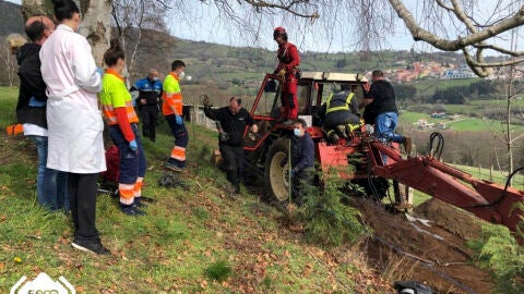 Los restos mortales del fallecido fueron excarcelados por efectivos de Bomberos del Servicio de Emergencias del Principado de Asturias (SEPA) con base en el parque tinetense. Los bomberos tuvieron que cortar parte de la estructura del tractor para poder liberar a la víctima. El Centro de Coordinación de Emergencias del 112 Asturias recibió el aviso a las 12.20 horas. En la llamada indicaban que habían una persona atrapada por un tractor, por la pinza de una retro, en la citada localidad.