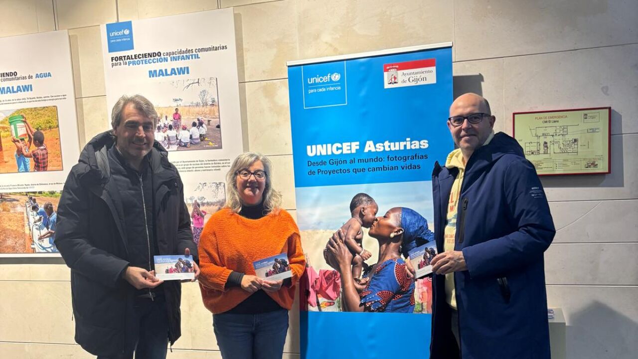 A la inauguración han acudido Nacho Calviño González, presidente de UNICEF Asturias, Verónica Rodríguez Fernández, jefa del Departamento de Innovación Cultural del Ayuntamiento de Gijón, y Luis Alberto Fernández González, director de Programas del Departamento de Innovación Cultural del Ayuntamiento de Gijón.
