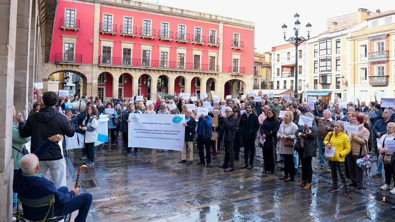 Este domingo se han manifestado en Gijón pequeños propietarios a quienes no les pagan el alquiler. Piden derogar la ley 11/2020. PP y Vox han apoyado la protesta. Acusan al consejero de vivienda de estar tensionando las cosas en Gijón tras la petición de suelo para construir vivienda protegida. El equipo de gobierno mantienen su oferta de negociar cesiones si hay compromisos por escrito.