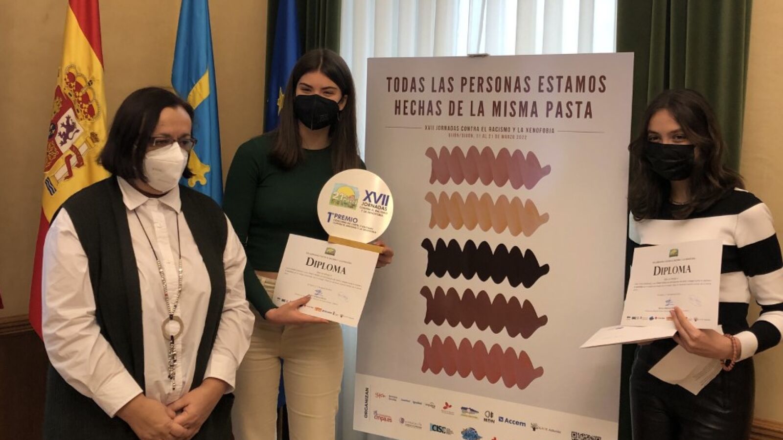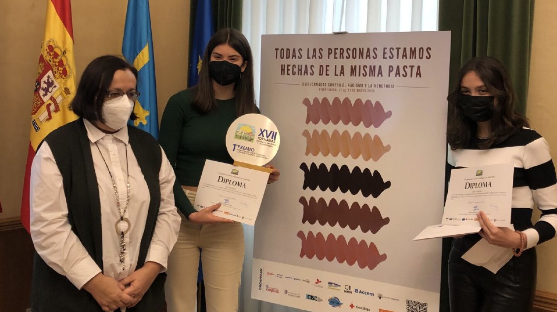 El Ayuntamiento organiza las XXVII jornadas contra el racismo y la xenofobia con el objetivo de promover la inclusión y la no discriminación. Las alumnas del Instituto Doña Jimena Laura Yañez y Lucía Ramón, ambas de 15 años, han diseñado el cartel. Nos recuerdan que “Todas las personas estamos hechas de la misma pasta” porque, lamentan, el racismo sigue entre nosotros