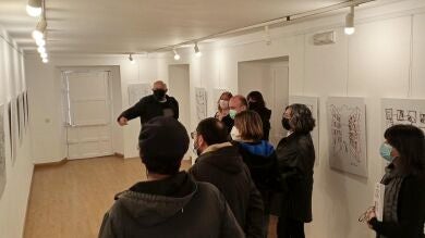 Este jueves el artista Toño Velasco ha estado presente en la exposición comentando cómo concibió y ejecutó la muestra “SINFINADOS” que durante estos días puede visitarse –hasta el 28 de mayo- en la casa de Cultura de Colunga.