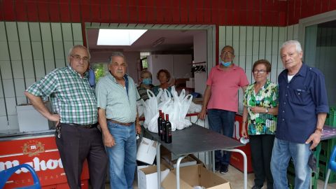 No quisieron faltar a su cita anual. Los jubilados y pensionistas de la Asociación Virgen de La Cueva celebraron el día del socio con el reparto de los bollos preñaos, acompañados de la botella de sidra o vino y una casadiella. El colectivo que preside Ramón Camblor procedió al reparto en el entorno del área recreativa de La Cueva, aprovechando en esta ocasión las instalaciones de las piscinas municipales, debido a la inoportuna lluvia que acompañó la jornada vespertina.