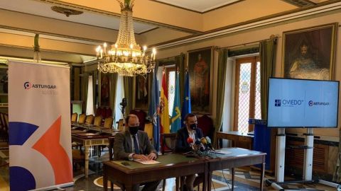 Declaraciones del edil de Economía Ovetense en la renovación del convenio del Ayuntamiento de Oviedo con Asturgar Su director general, Ángel Rodríguez, destaca que se mantienen las líneas covid que constituyen la mitad de los casi 700.000 euros que la sociedad lleva gestionados este año y que este año se ha multiplicado por tres la actividad de la Sociedad en Oviedo actuando de tractor para otras inversiones.
