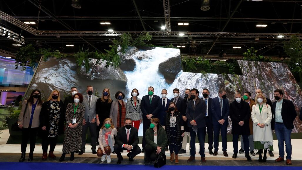 La ministra de Industria y Turismo, Reyes Maroto, que visitó por sorpresa el stand del Principado de Asturias dijo que la comunidad autónoma fue un reclamo turístico durante la pandemia y ahora ha de abrirse al mercado internacional, además de participar en el plan de mejora de la ruta jacobea que tiene en Oviedo unos de sus referentes.