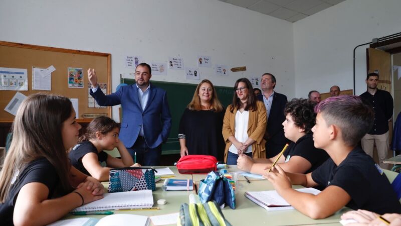 El Presidente del Principado visitó hoy el Colegio Público de Educación Básica "Carlos Bousoño" en Boal con motivo del inicio del curso escolar. Adrián Barbón destacó las ratios privilegiadas que Asturias mantiene para que haya escuelas abiertas en el medio rural, con tan solo cuatro e incluso tres estudiantes, situación que no ocurre en otras CCAA, una apuesta que tiene gran valor para fijar población.