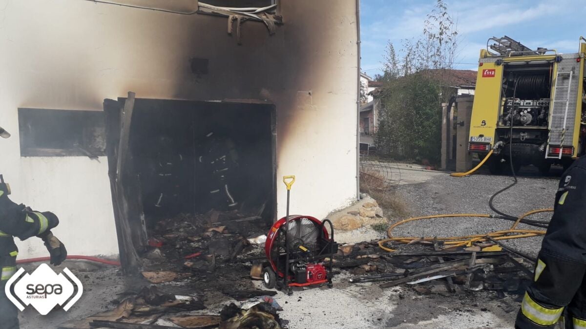 El Centro de Coordinación de Emergencias del 112 Asturias recibió el aviso a las 14.19 horas. En la llamada señalaban que estaba quemando una vivienda y el dueño estaba intentando sofocar el fuego con un extintor. Se trataba de una casa independiente de planta baja y primera. Lo estaba viendo desde lejos, aunque indicó que sabía que en el bajo de ese inmueble había una carpintería por lo que podría haber madera almacenada.