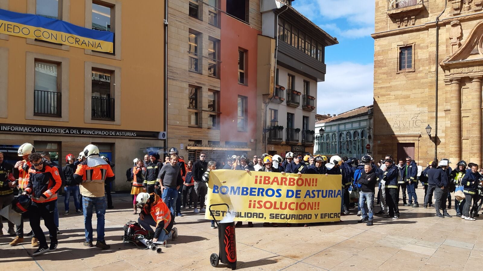 Protesta de los bomberos en Asturias. Una marcha de una hora entre la Junta General del Principado y el Ayuntamiento de Oviedo con efectivos del Servicio de Emergencias del Principado y de los cuerpos municipales de Gijón y Oviedo. En realidad, son exigencias y denuncias históricas pero la crisis de los incendios forestales acentúa sus reivindicaciones.