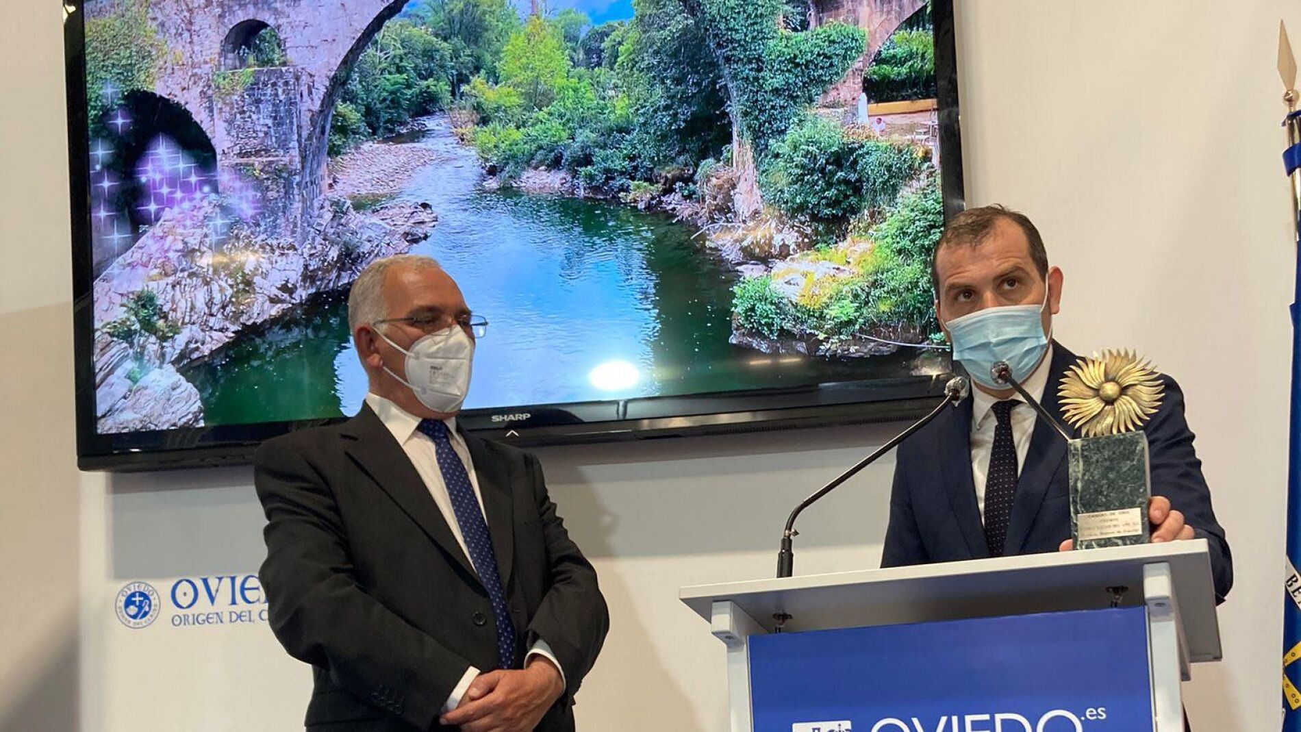 Cangas constituye la puerta asturiana de los Picos de Europa y Covadonga, una ciudad a orillas del Sella, que cruza su fotográfico puente, y también un entorno que cuenta con numerosos senderos para perderse por la montaña; una tierra que posee tesoros gastronómicos con denominación de origen. "Por todos estos méritos, Cangas se ha alzado con el premio de este año", añadió el alcalde.