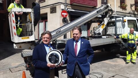 La red de cámaras de seguridad del Ayuntamiento de Oviedo se ampliará en los próximos meses comenzando por el Antiguo. El alcalde Alfredo Canteli y el concejal de Seguridad José Ramón Prado han estado en la colocación de la primera cámara, de tres lentes, en la plaza del Paraguas. El casco histórico ovetense contará con 14 cámaras. El Ayuntamiento ya tenía previstos 10 visores pero, atendiendo las demandas vecinales, se van a colocar otras cuatro en calles como Altamirano y Trascorrales. Todo con una inversión de 195.000 euros. El alcalde de Oviedo afirma que estarán situadas en “sitios estratégicos” y servirá para el inicio de la rehabilitación del Antiguo donde encuadra también la limpieza de pintadas. Canteli precisa que las cámaras cuentan con todos los visados legales y autorización de Delegación del Gobierno. Tener este dispositivo es compatible con la presencia policial, incluso reforzada, indica el regidor.