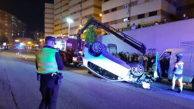 El SUV quedó volcado tras impactar contra la furgoneta que presentaba un fuerte golpe en la parte delantera izquierda.