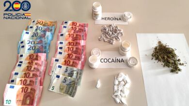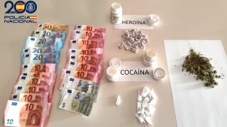 La Policía Nacional ha detenido en Langreo a un hombre por tráfico de drogas que ya había sido detenido en tres ocasiones en menos de un año por el mismo motivo. Se le incautaron 46 dosis de heroína, 17 de cocaína y varias de marihuana, además de 286 euros en metálico.