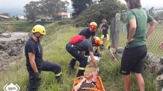 Un ciclista, de 66 años, ha resultado herido leve tras caer, en circunstancias que se desconocen, por un desnivel de unos 8 metros, cuando realizaba la ruta de la senda costera de la playa de La Isla, en Colunga. El hombre tuvo que ser rescatado del lugar donde había caído por efectivos de Bomberos del Servicio de Emergencias del Principado de Asturias (SEPA), con base en el parque de Villaviciosa. Junto al jefe de zona oriental, la dotación instaló un pequeño polipasto y evacuó al hombre, en camilla nido, hasta un prado donde esperaba la ambulancia.