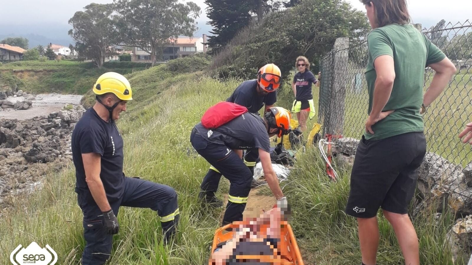 Según datos facilitados por el Servicio de Atención Médica Urgente (SAMU) el afectado presentaba policontusiones de carácter leve a expensas de más pruebas y hasta nueva valoración médica. Fue trasladado en la ambulancia de soporte vital básico de Colunga al Hospital de Arriondas. El Centro de Coordinación de Emergencias del 112 Asturias recibió el aviso a las 15.11 horas. En la llamada indicaban que estaban haciendo una ruta en bicicleta por la citada senda costera y uno de los miembros del grupo había caído unos 8 metros. Con el golpe se había roto el caso y tenía heridas en las rodillas.