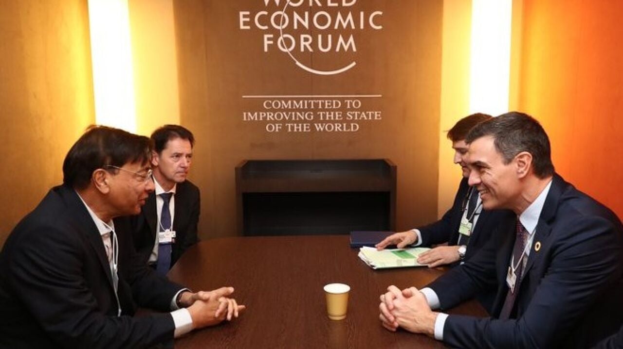 El Presidente del Gobierno, Pedro Sánchez, y el Presidente de la Multinacional del acero, Lakshmi N. Mittal, analizaron en Davos el proceso de descarbonización de ArcelorMittal en Asturias y se comprometieron a firmar próximamente un memorándum para materializar el proyecto que supondrá cuantiosas inversiones en las plantas de Gijón y Avilés.