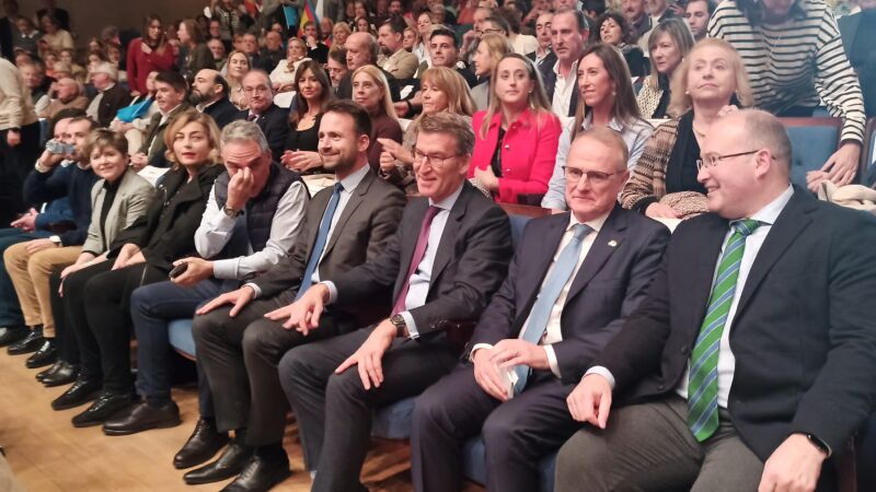 Feijóo llegaba a Oviedo tras una visita a Gijón. El presidente popular elogió a Diego Canga por dar el paso a la política. Está seguro de su "experiencia y trabajo" estarán al servicio de Asturias. El presidente del PP tuvo un recuerdo para Isidro Fernández Rozada, Ovidio Sánchez, Mercedes Fernández y Teresa Mallada, todos presentes, como personas que acreditaron "generosidad" con el partido desde hace décadas. Feijóo deseó poder visitar Oviedo con Alfredo Canteli como alcalde con mayoría absoluta. El número uno del PP estuvo en Oviedo acompañado por dos de sus principales baluartes orgánicos, el coordinador general Elías Bendodo y el vicesecretario de organización Miguel Tellado.