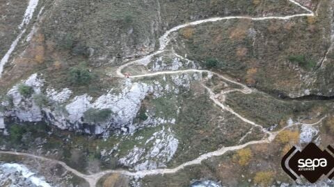 El Centro de Coordinación de Emergencias recibió el aviso a las 12:43 horas. En la llamada se explicó que la mujer se había lesionado un tobillo cuando estaban bajando de Bulnes a Poncebos. De inmediato se movilizó al equipo de rescate del SEPA, a bordo de la aeronave medicalizada.
