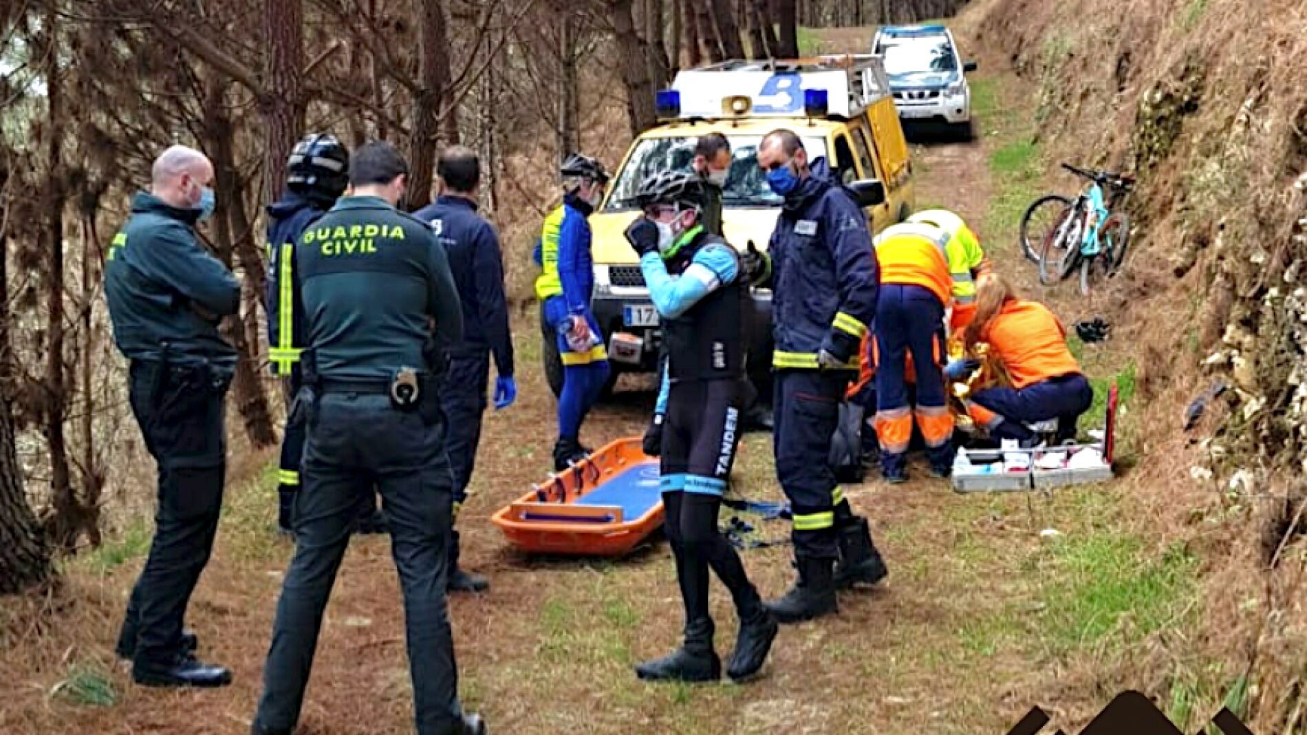 Una vez en la zona, una pista forestal, el equipo médico activado por el SAMU atendió al ciclista accidentado. Fueron los bomberos los encargados de trasladar al lugar al citado equipo médico. A continuación se evacuó, en el vehículo de bomberos, al varón herido hasta el lugar en el que aguardaba la ambulancia.