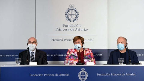 Están contentos de poder encontrarse y celebran el poder haber llegado a esta situación. Un proceso que comenzó, precisamente, con sus investigaciones. Son los científicos que han desarrollado el sistema de ARN mensajero, base de las vacunas de Pfizer y Moderna. Tres de los siete Premio Princesa de Asturias de Investigación Científica y Técnica 2021, los que ya están en Oviedo.