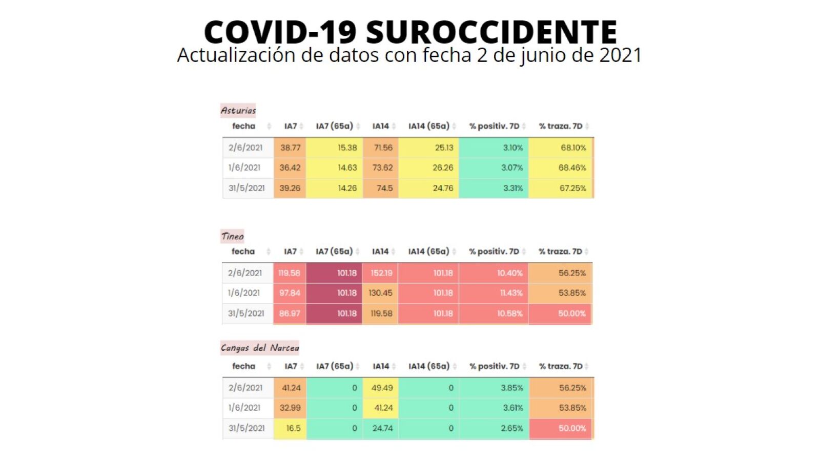 De los 56 casos anotados ese día en Asturias, 3 se han contabilizado en el Área Sanitaria II (2 en Tineo y 1 en Cangas)