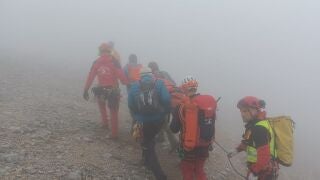 La niebla en la zona impidió el rescate con el helicóptero medicalizado que sí logró dejar a dos rescatadores y a la médica-rescatadora en las inmediaciones del refugio para dirigirse a pie hasta donde se encontraba el herido. Mientras tanto los compañeros del escalador lograron descender con él hasta la base.