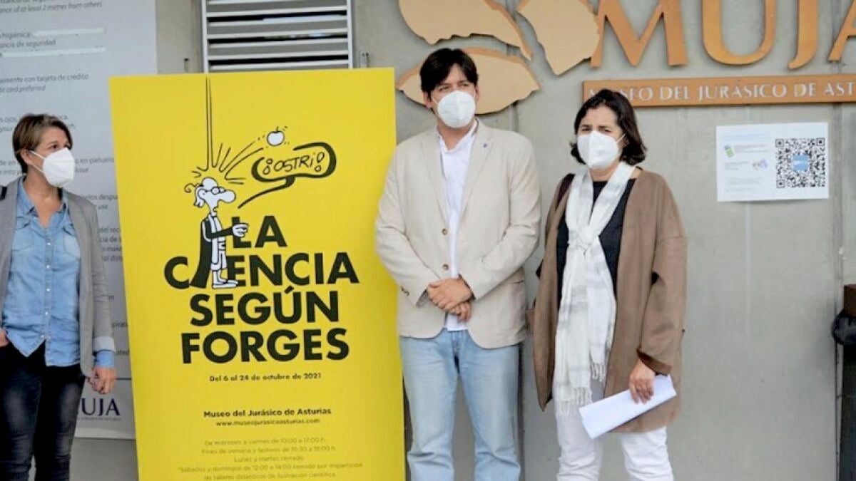 El consejero de Ciencia, Innovación y Universidad, Borja Sánchez, ha participado en la inauguración de la exposición La Ciencia según Forges, que se puede visitar en el Museo del Jurásico de Asturias (Muja). La muestra está producida por el Consejo Superior de Investigaciones Científicas (CSIC) e incluye 66 viñetas del humorista gráfico Antonio Fraguas Forges de temática científica y tecnológica. El consejero estuvo acompañado por la delegada del CSIC en Asturias, María Fernández, y por la alcaldesa de Colunga, Sandra Cuesta.