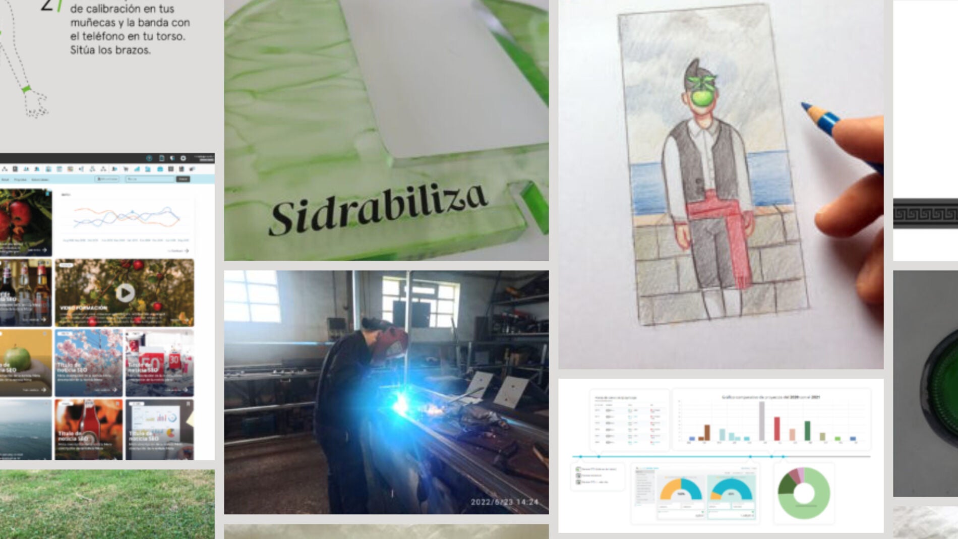 Consiste en doce piezas impresas, digitales o volumétricas, que muestran la particular visión de cada diseñador/a asturiano/a participante sobre la cultura de la sidra en la actualidad o sus propuestas de cómo el diseño puede mejorar o influir en ella. Las piezas se han creado en colaboración con empresas involucradas en el mundo del diseño y que cuentan con una especial actitud y preocupación por su evolución y desarrollo. De esta forma, nos gustaría valorar el trabajo y aportar visibilidad al enriquecimiento que supone una buena ejecución material de los proyectos.