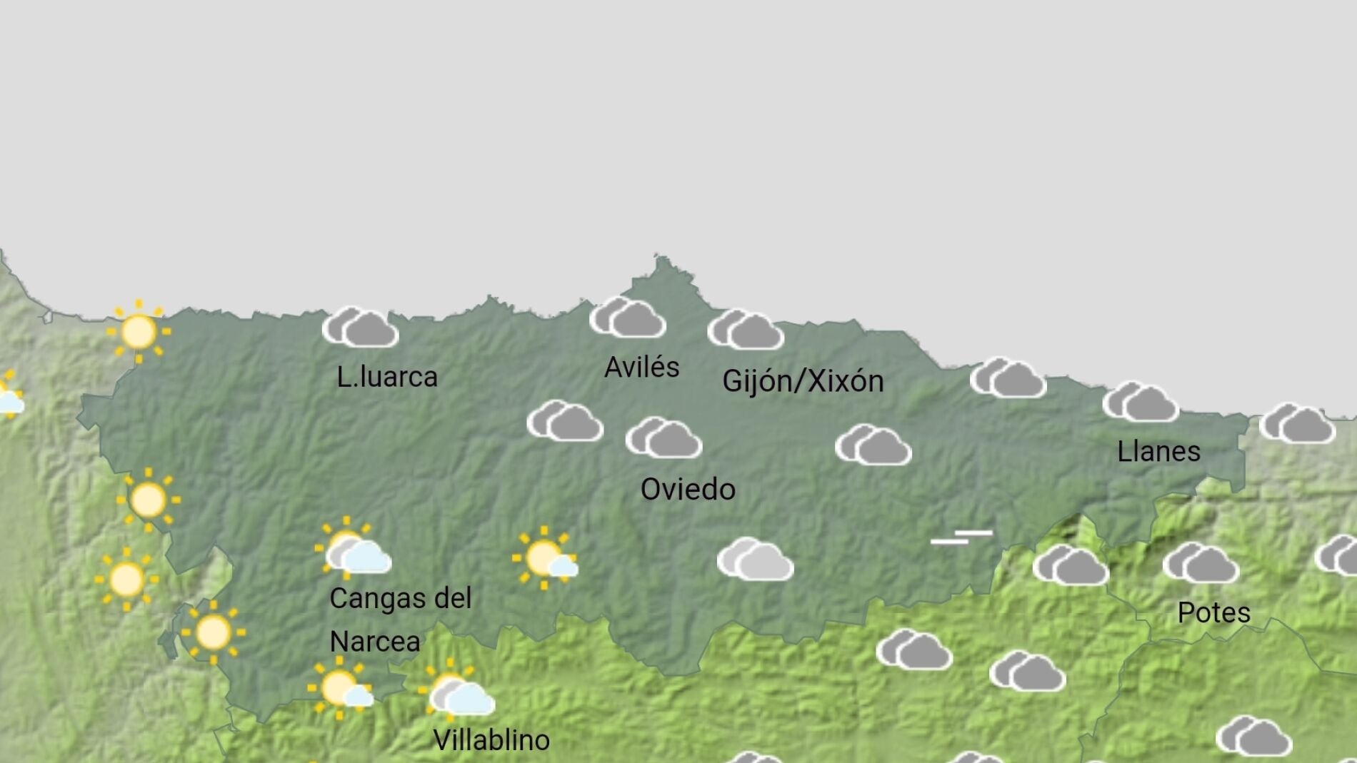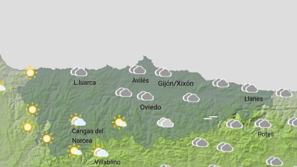 En cuanto a las temperaturas en las principales ciudades de la región, Oviedo registrará una mínima de 7 grados y una máxima de 14; en Gijón se oscilará entre la mínima de 9 y la máxima de 14, y Avilés entre una mínima de 8 y una máxima de 14.
